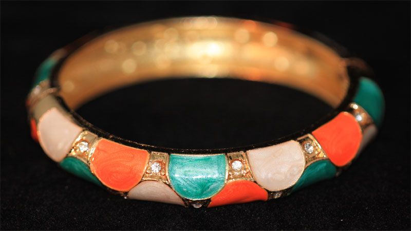 MULTICOLOR AND CZ BRASS BANGLE **|**|** MULTICOLOR AND CZ BRASS BANGLE ; MSRP: $300