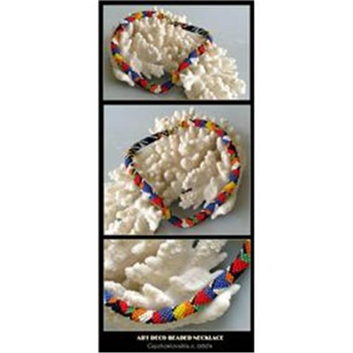 Beautiful multicolored beaded Art Deco rope choker necklace in geometrical design. This piece is 14-1/2 inches long and approximately 3/8 inches in diameter. Excellent condition, Czechoslovakia circa 1930's.