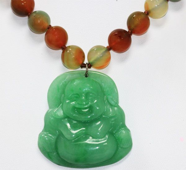 MULTICOLOR JADE CHINESE GOOD LUCK CHARM BUDDHA NECKLACE **|**|** MULTICOLOR JADE CHINESE GOOD LUCK CHARM BUDDHA NECKLACE WITH 14K WHITE GOLD LOCK ; MSRP: $0