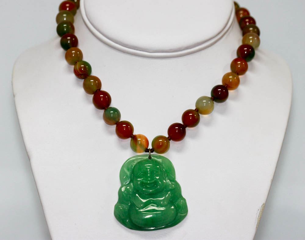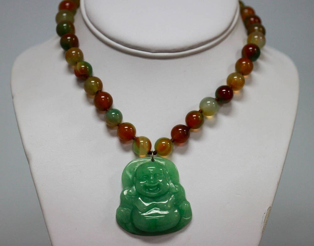 MULTICOLOR JADE GOOD LUCK CHARM BUDDHA NECKLACE WITH 14 **|**|** MULTICOLOR JADE GOOD LUCK CHARM BUDDHA NECKLACE WITH 14K WHITE GOLD LOCK