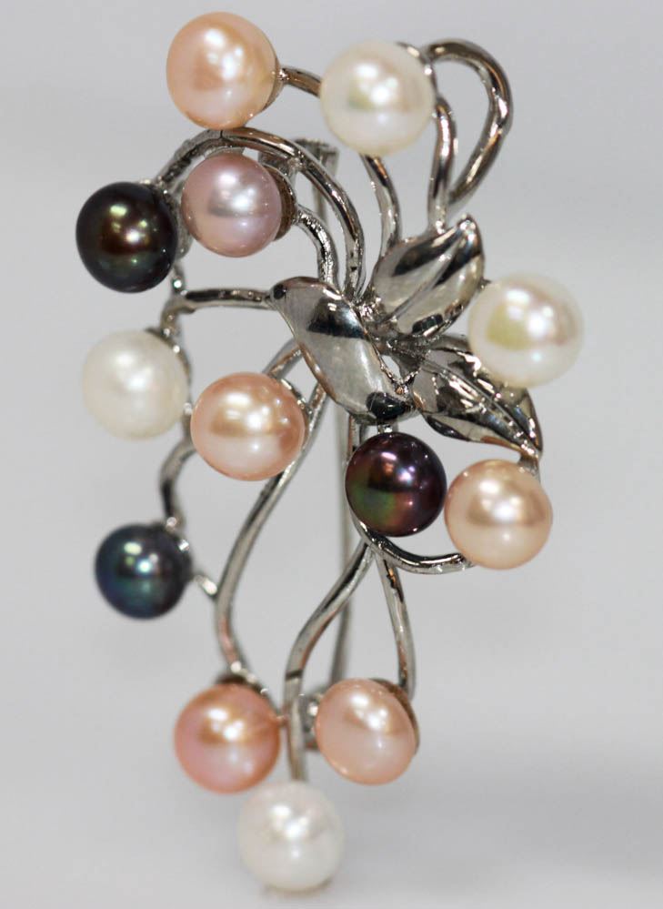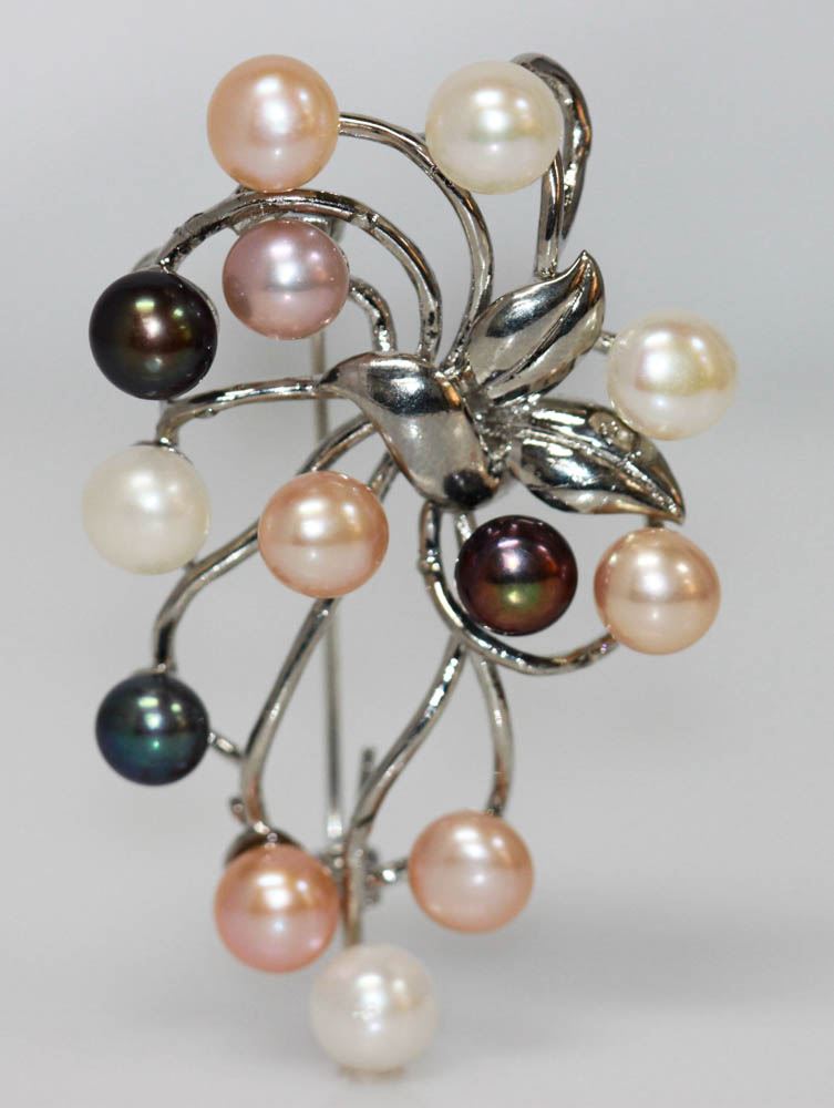 MULTICOLOR PEARL BROOCH .925 STERLING SILVER **|**|** MULTICOLOR PEARL BROOCH .925 STERLING SILVER