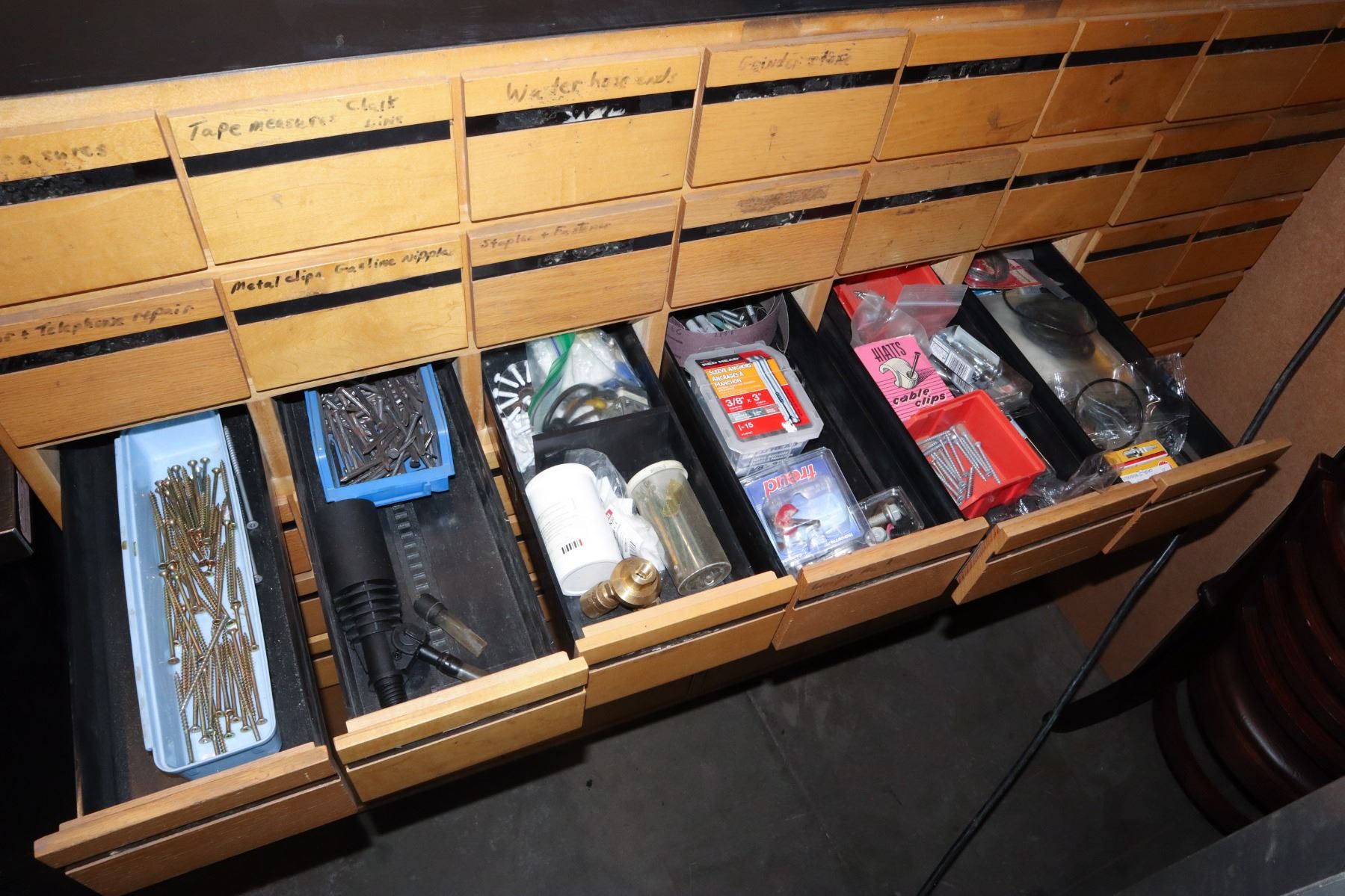 MULTIDRAWER WOODEN CABINET WITH CONTENTS