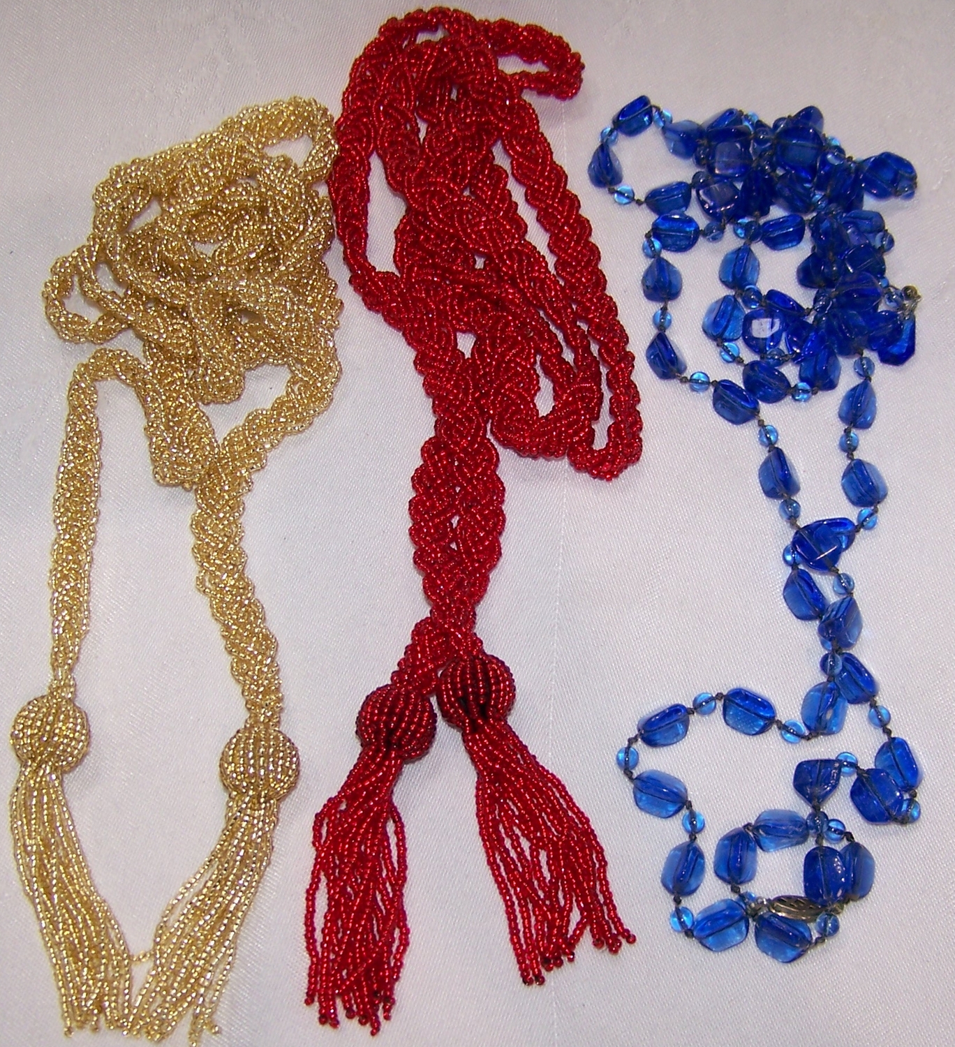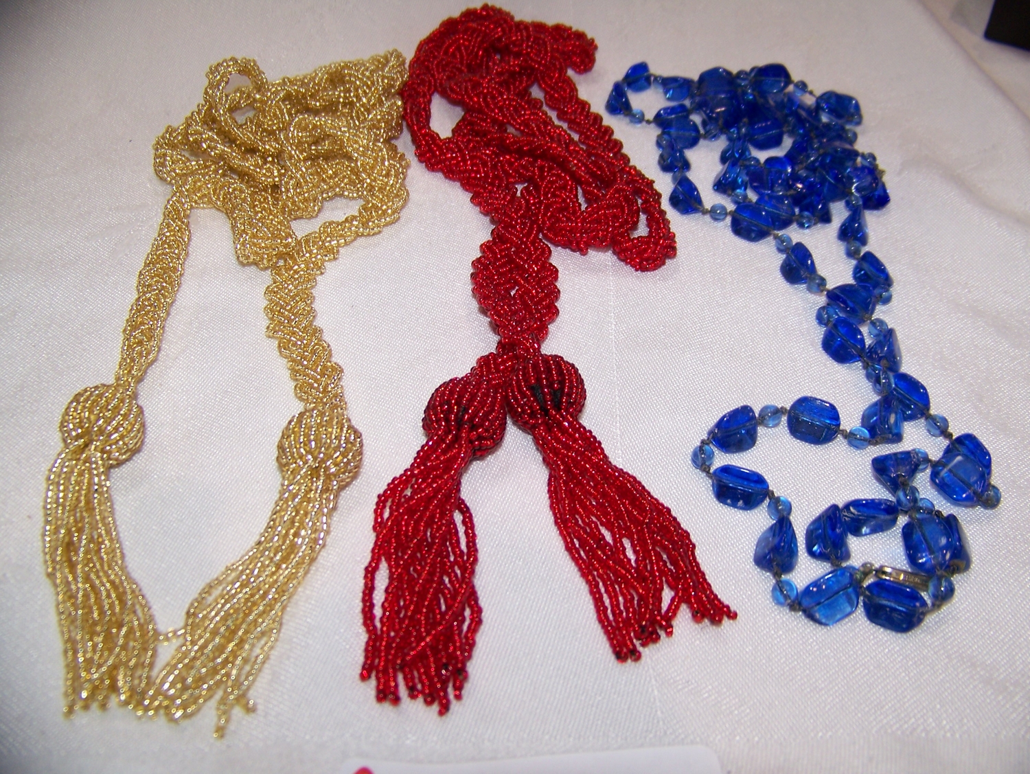 a FASHION BLUE BEAD NECKLACE (2) LARIAT NECKLACES