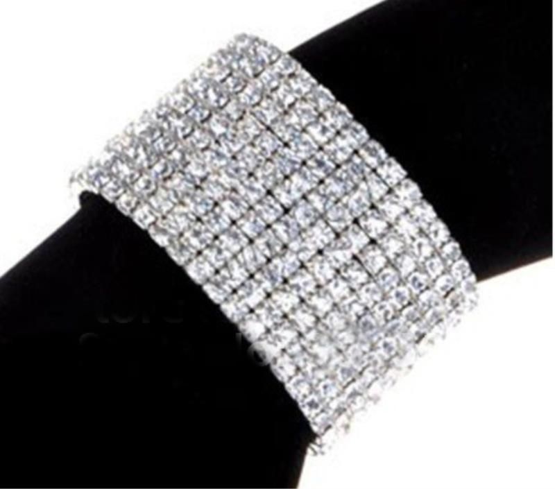 ATTRACTIVE 8 STRAND CRYSTAL RHINESTONE STRETCH BANGLE BRACELET, measures approx 1 in wide