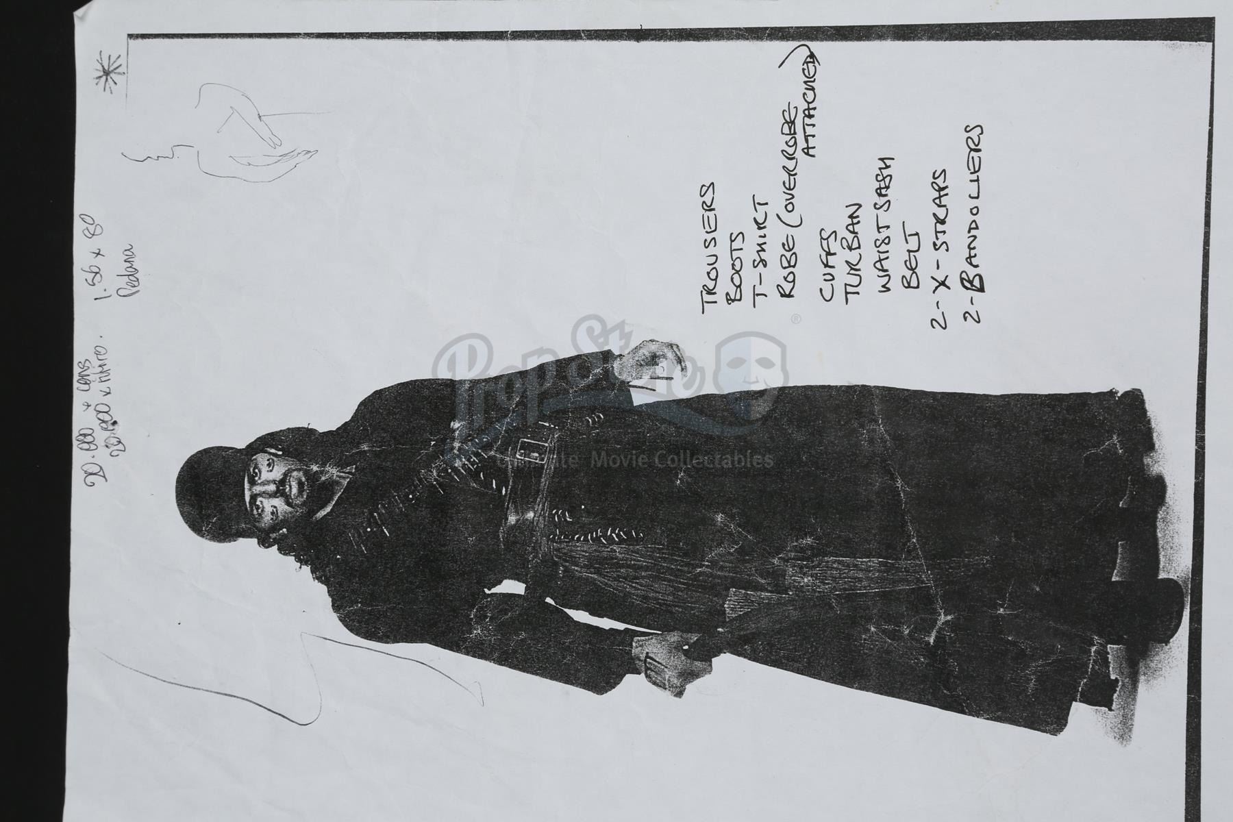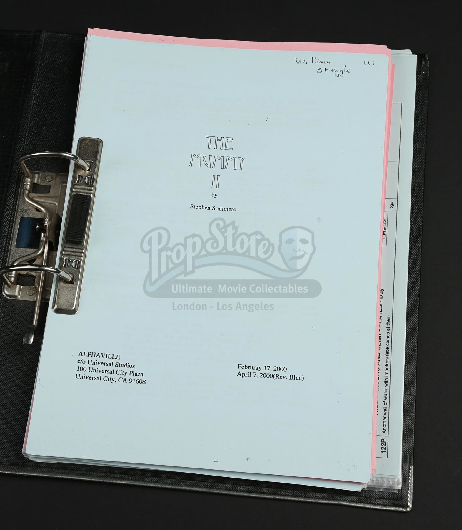 A script, production schedule and continuity Polaroids from Stephen Sommers' action-adventure sequel The Mummy Returns. The binder contains production information vital to creation the movie. The production-used script is 103 pages long, featuring blue revisions, and is accompanied by ten continuity Polaroids, costume drawings of the Medjai and Red Turban Guards, and a blue-page production schedule. The set remains in good condition. Dimensions: 32 cm x 29 cm x 5 1/2 cm (12 1/2'' x 11 1/2'' x 2 1/4'')