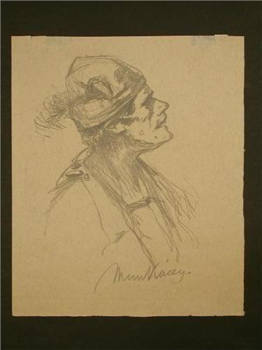 Additional Information : This pencil drawing by the famous Hungarian artist Mihaly Von Munkcsy is Hand Signed in pencil at the lower margin "Munkcsy"