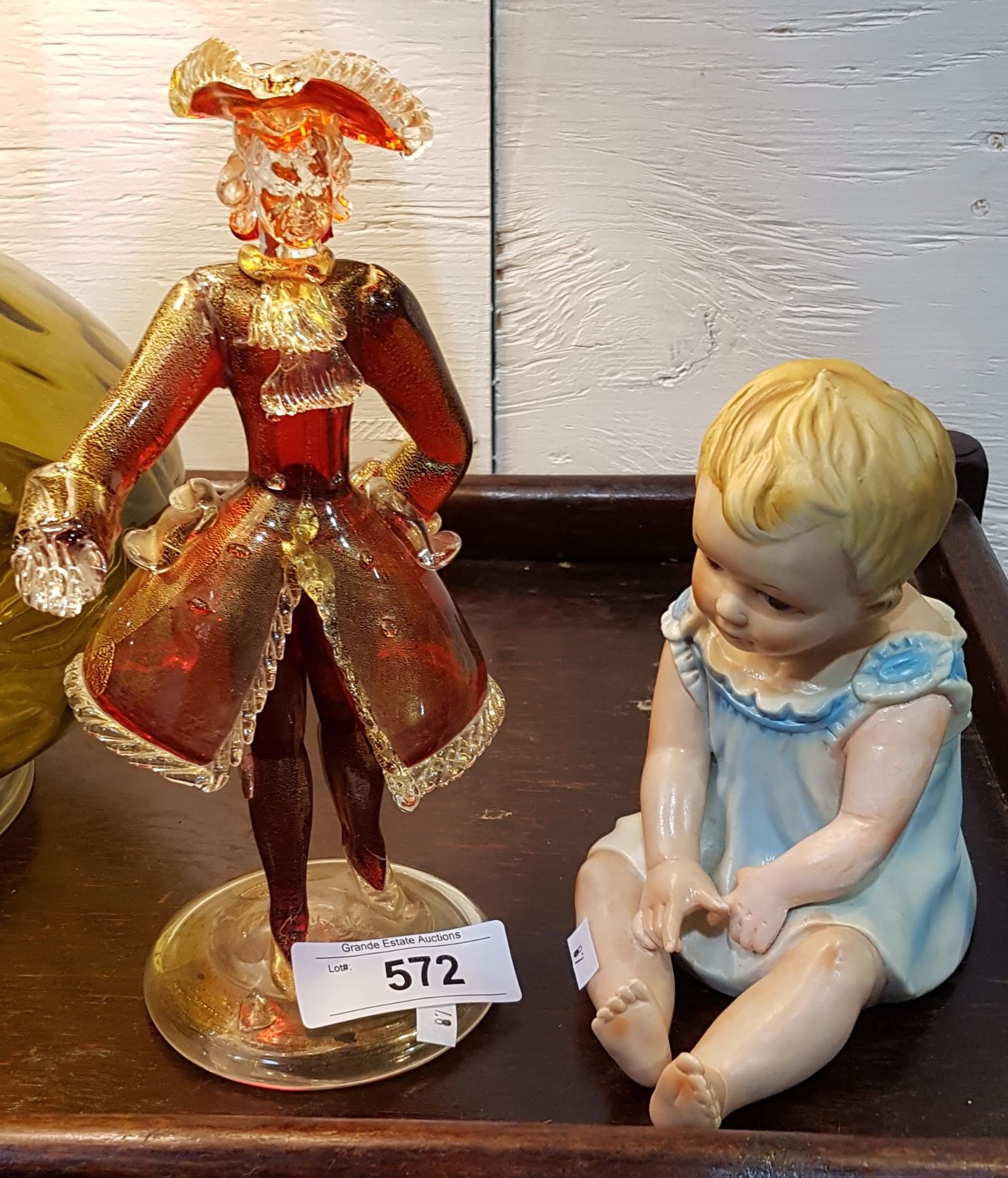 MURANO ART GLASS FIGURE MISSING WALKING STICK AND VINTAGE BABY FIGURINE