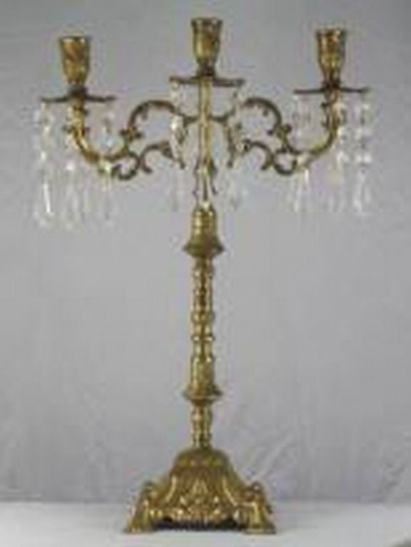 MURANO CHANDELIER BRASS CANDELABRA - BRASS BASE & STEM - MURANO CHANDELIER CRYSTALS - 12L"x 5W"x 16H"