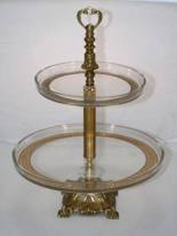 MURANO CRYSTAL 2 TIER SERVER - HAND PAINTED 14 KT GOLD DESIGN - 9L"x 9W", 13L"x 13W", 21H"