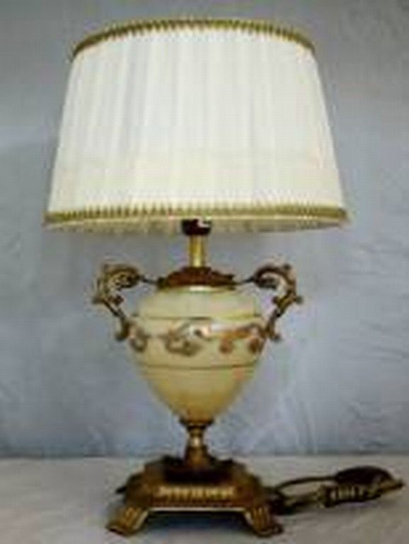 MURANO CRYSTAL LAMP WITH SHADE - IVORY SHADE WITH LACE AND GOLD TRIMMING - HAND PAINTED GOLD DESIGN - INTRICATE BRASS BASE AND ACCENTS - 5L" x 5W" x 18H"