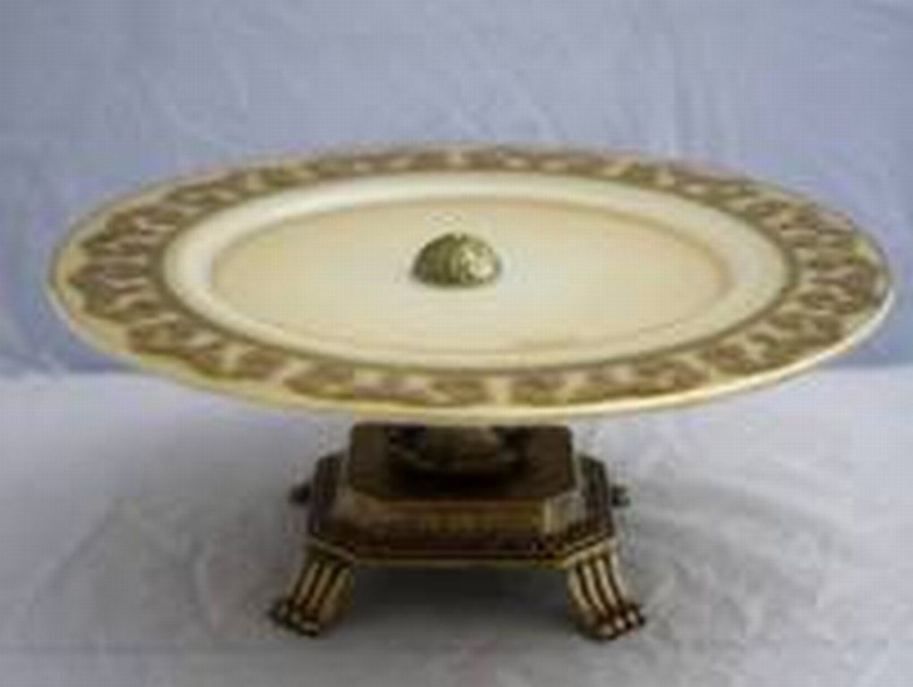 COLORED MURANO CRYSTAL SERVER - HAND PAINTED GOLD ARTWORK - BRASS BASE AND ACCENTS - 5L" x 5W" x 18H"