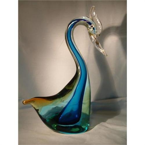 1940'S 1950'S MURANO GLASS SWAN, THE MAIN COLOR IS A DEEP BLUE WITH GREEN HIGHLIGHTS RUNNING INTO THE BASE, PERFECT CONDITION, HAS GOOD WEIGHT TO IT, AND REALLY LOOKS GREAT WHEN THE SUNLIGHT HITS IT.