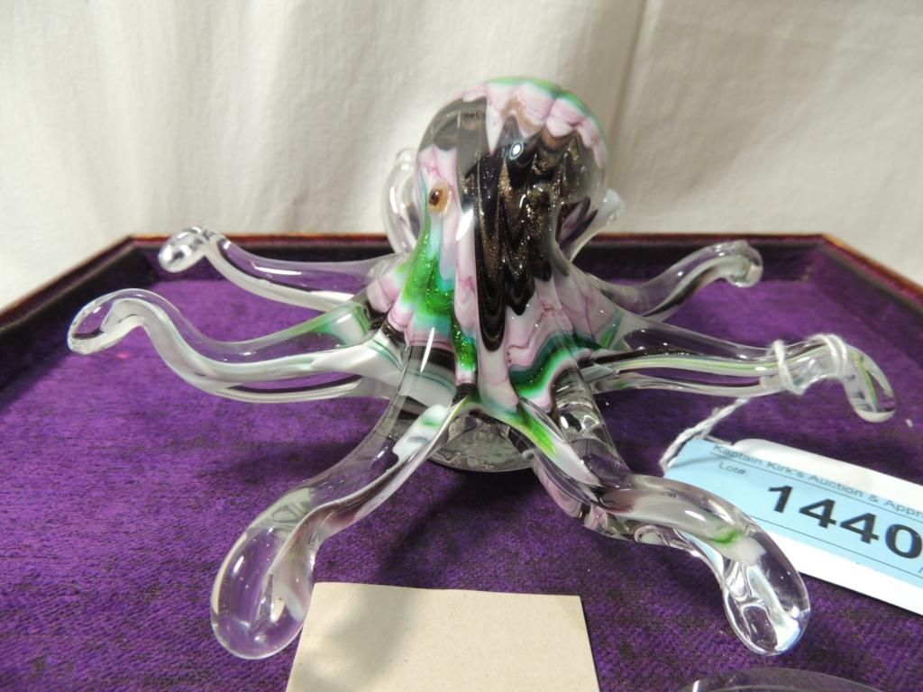 GLASS OCTOPUS SCULPTURE FIGURINE ANIMAL HAND BLOWN GLASS GLASS PAPERWEIGHT MURANO ART GLASS. ORIGINAL MURANO. MURANO HAND BLOWN GLASS FIGURINE EACH 100% AUTHENTIC MURANO GLASS FIGURINES ARE TRULY A ONE OF A KIND DESIGN FROM THE ISLAND OF MURANO, ITALY.