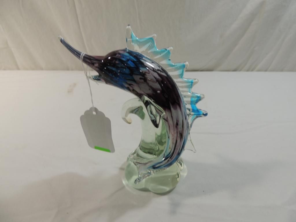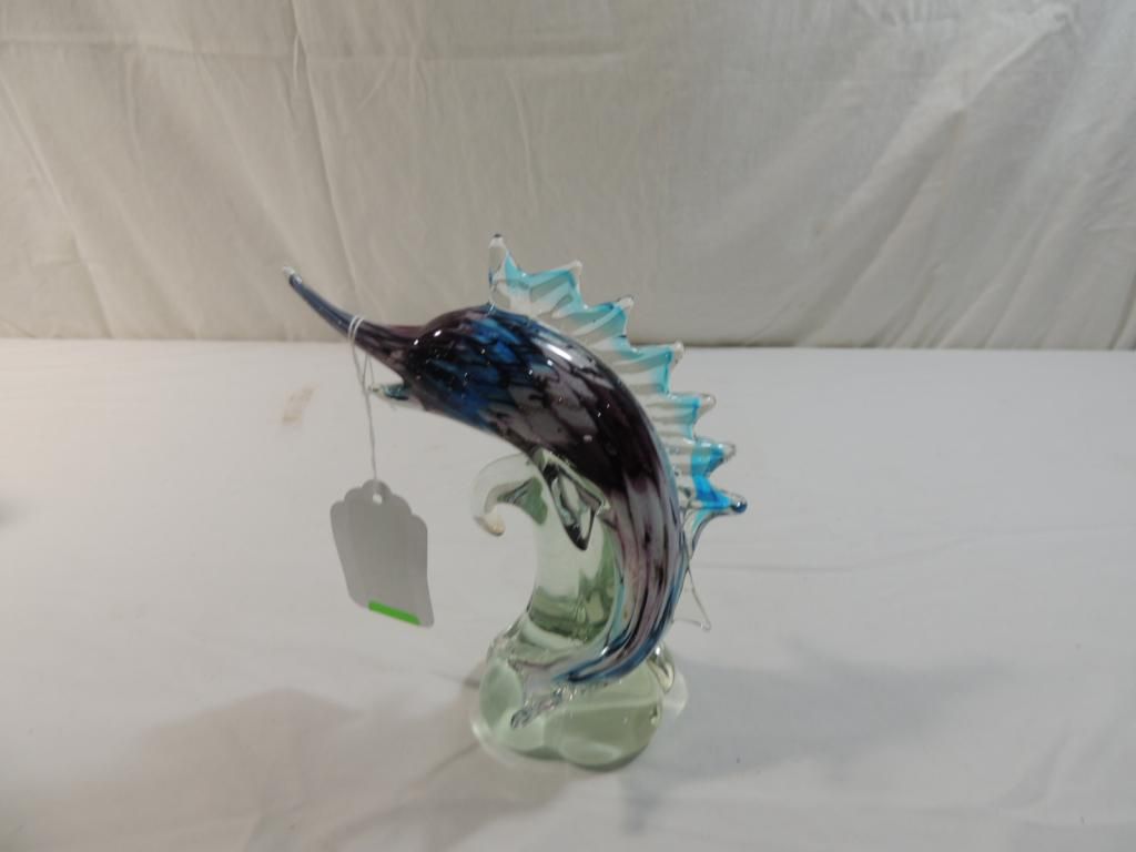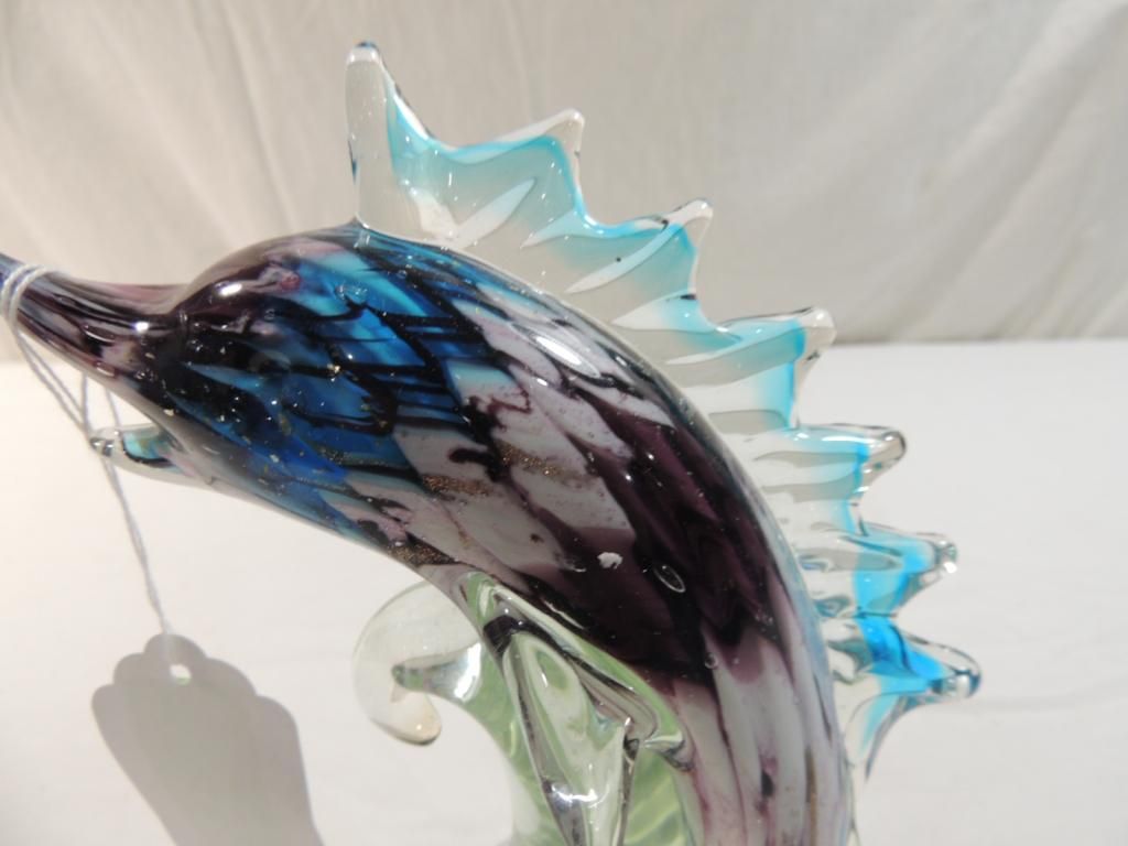 SWORDFISH SCULPTURE BLUES PINK PURPLE A ONE OF A KIND DESIGN FROM THE ISLAND OF MURANO, ITALY. EACH OF THEIR HAND BLOWN PRODUCTS ARE THE HIGHEST QUALITY ORIGINAL MURANO GLASS MADE ACCORDING TO ANCIENT TECHNIQUES AND TRADITIONS. BEAUTIFUL UNIQUE PIECE RET