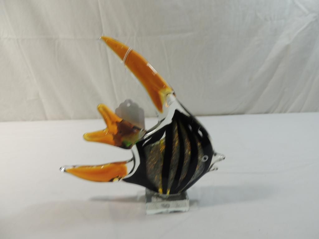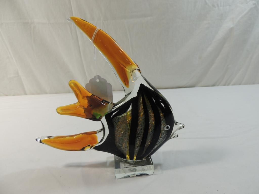 TROPICAL FISH SCULPTURE BLACK BROWN YELLOW WHITE COLORS A ONE OF A KIND DESIGN FROM THE ISLAND OF MURANO, ITALY. EACH OF THEIR HAND BLOWN PRODUCTS ARE THE HIGHEST QUALITY ORIGINAL MURANO GLASS MADE ACCORDING TO ANCIENT TECHNIQUES AND TRADITIONS. BEAUTIFUL