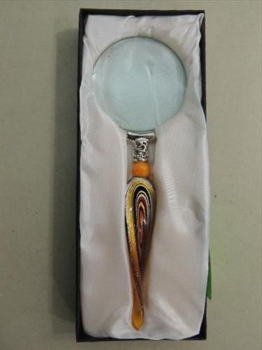 MURANO STYLE 8"L GLASS HANDLE HAND HELD MAGNIFYING GLASS. AS SHOWN. VIEW PICTURE FOR DETAIL.