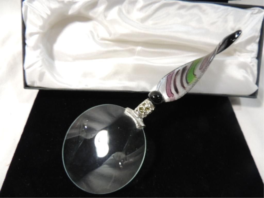 MURANO STYLE 8"L GLASS HANDLE HAND HELD MAGNIFYING GLASS. AS SHOWN. VIEW PICTURE FOR DETAIL.