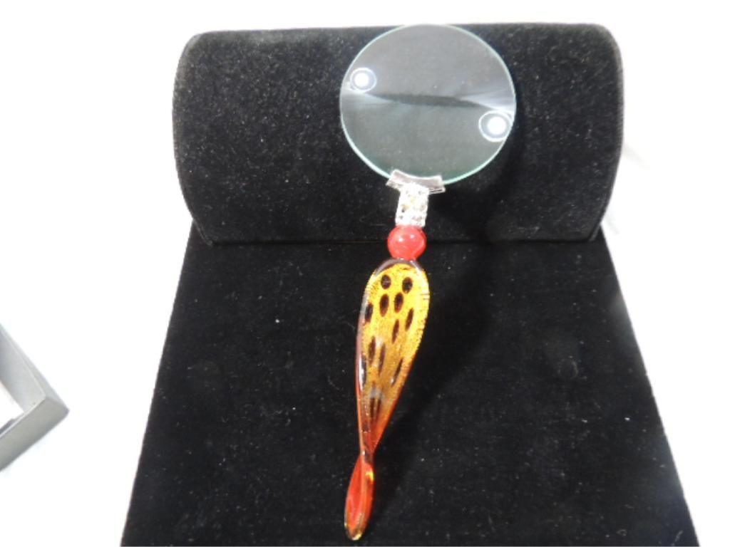 MURANO STYLE 8"L GLASS HANDLE HAND HELD MAGNIFYING GLASS. AS SHOWN. VIEW PICTURE FOR DETAIL.
