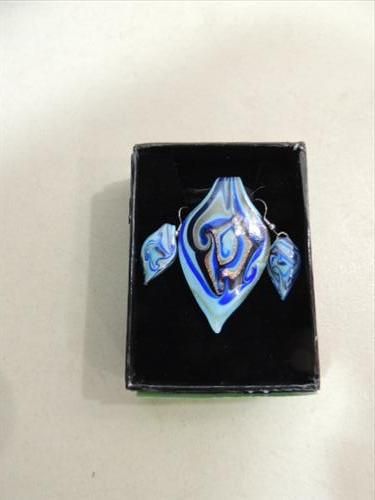 MURANO STYLE BLUE & GOLD GLASS MATCHING EARRINGS & NECKLACE. AS SHOWN. VIEW PICTURE FOR DETAIL.