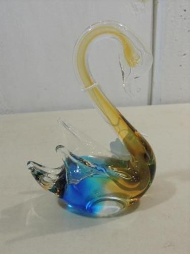 MURANO STYLE BLUE & GOLD GLASS SWAN. AS SHOWN. VIEW PICTURE FOR DETAIL.