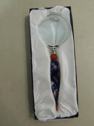 MURANO STYLE 8"L BLUE & SILVER HANDLE MAGNIFYING GLASS. AS SHOWN. VIEW PICTURE FOR DETAIL.