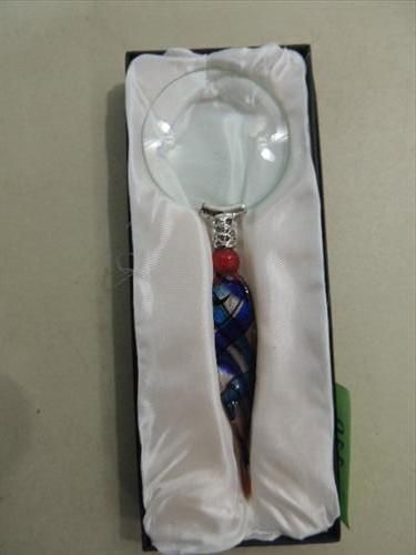 MURANO STYLE 8"L BLUE & SILVER HANDLE MAGNIFYING GLASS. AS SHOWN. VIEW PICTURE FOR DETAIL.