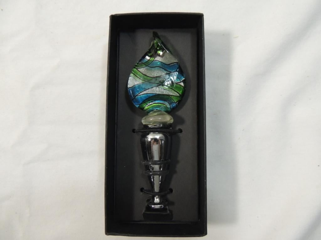 GLASS AND METAL DECORATIVE BOTTLE STOPPER,WINE BOTTLE STOPPER, DESIGNER STOPPER, BOTTLE TOPPER AS SHOWN SEE PHOTO FOR MORE DETAILS.