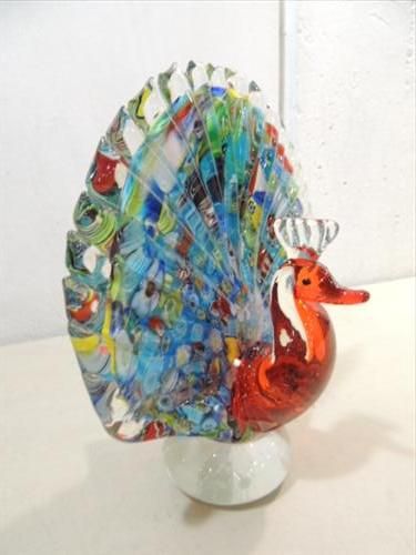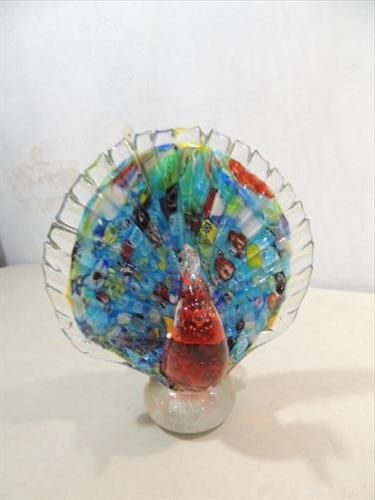 MURANO STYLE MULTI-COLORED STYLIZED GLASS PEACOCK. AS SHOWN. VIEW PICTURE FOR DETAIL.