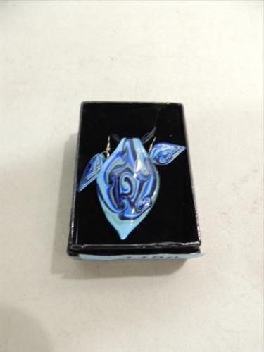 MURANO STYLE SET OF MATCHING EARRINGS & NECKLACE. BLUE & BLACK DESIGN. AS SHOWN. VIEW PICTURE FOR DETAIL.