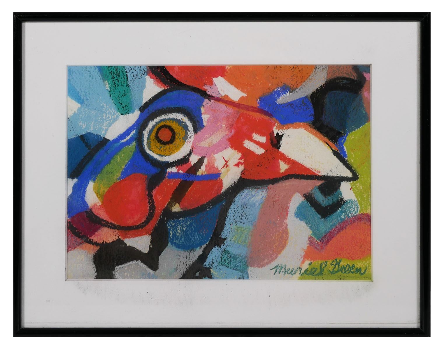 Pastel on paper of an abstract bird by Florida/Miami artist Muriel Green (American, 1923-2016). Signed lower right. Overall framed size is 14" x 11". Excellent condition.