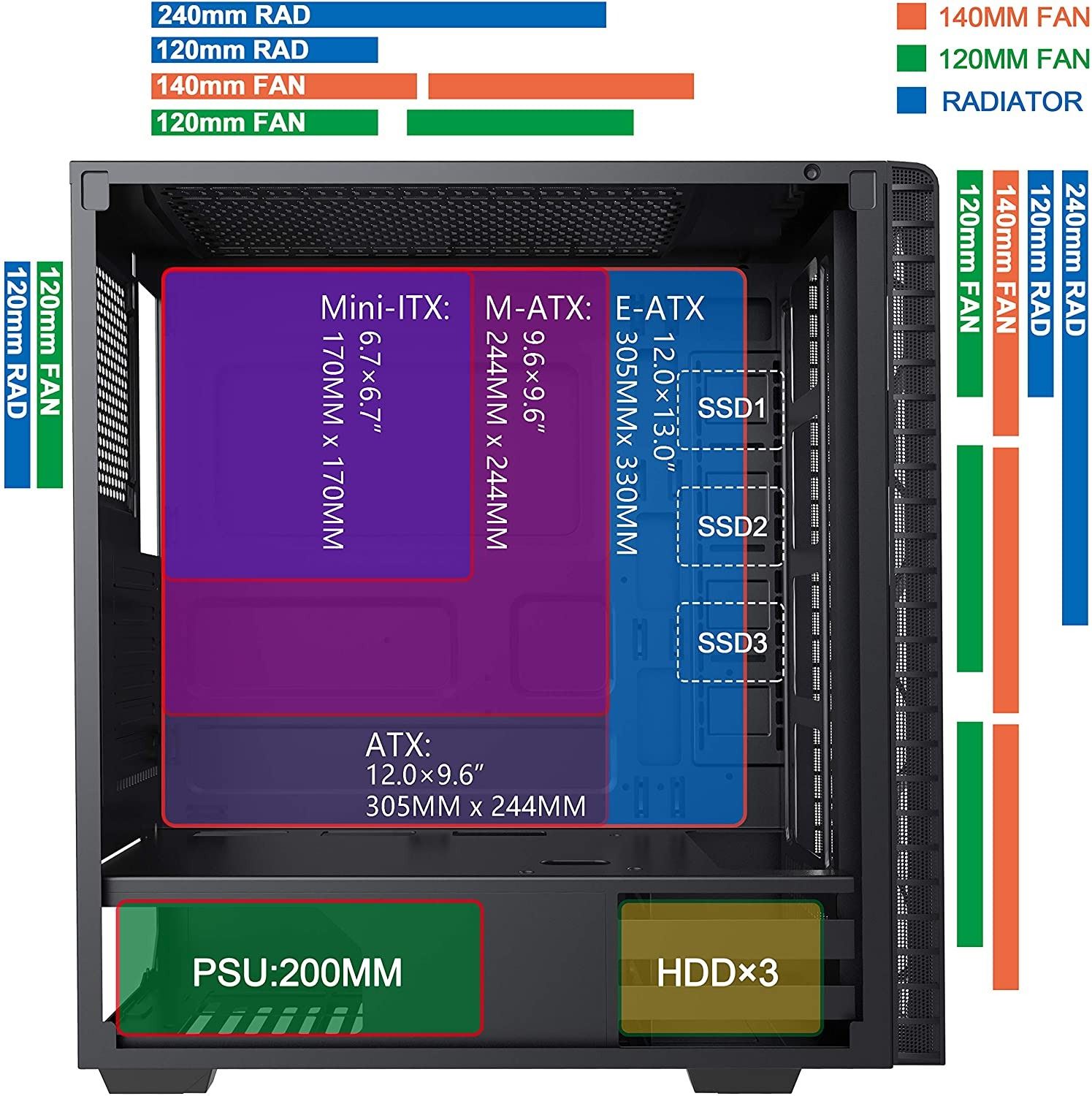 Computer cases may vary - specifications are exact.