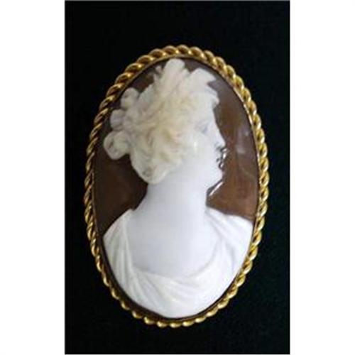 <tr><td>Title:MUSEUM QUALITY ANTIQUE CAMEO BROOCH</td></tr>