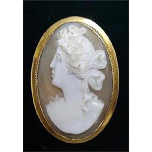 <tr><td>Title:MUSEUM QUALITY GOLD CAMEO BROOCH</td></tr>