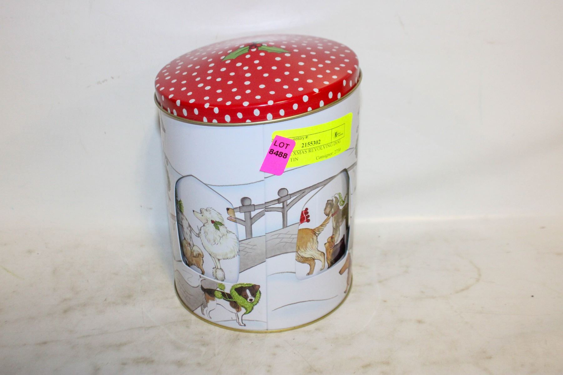 MUSICAL XMAS REVOLVING DOG BISCUIT TIN