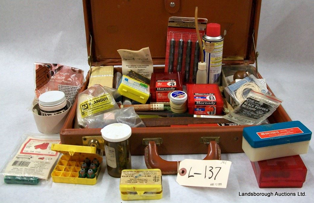 BULLETS, LUBE SABOTS, CAPS, CLEANING ROD, HAMMER FOR 45 AND 50 CAL RIFLES.