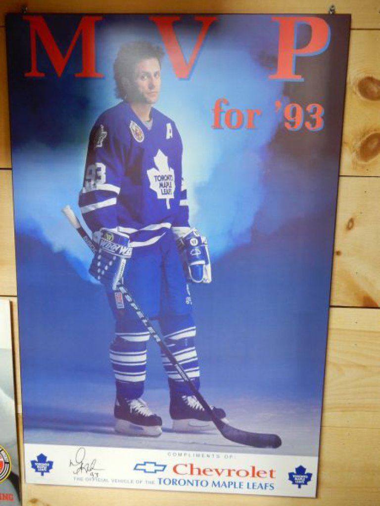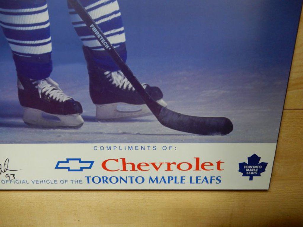 MVP '93 DOUG GILMOUR POSTER BOARD MAPLE LEAF/CHEVROLET- SIGNED- 34 3/4" X 23" LOCATION: UPPER BACKROOM