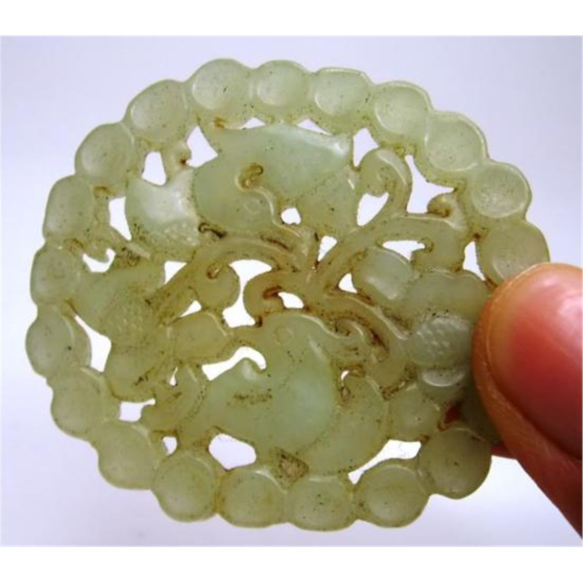 MWF1026 Handcarved Chinese Jade Pendant Depicting BIRD & FLOWER
