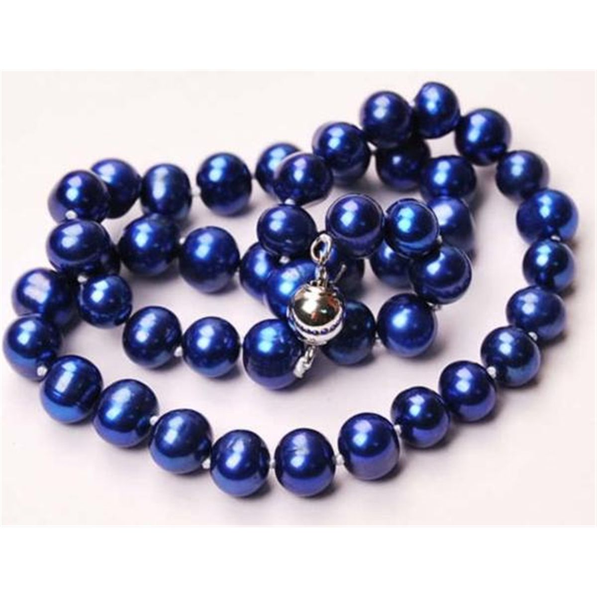 MWF1053 8-9mm PEACOCK BLUE AKOYA PEARLS NECKLACE 17~