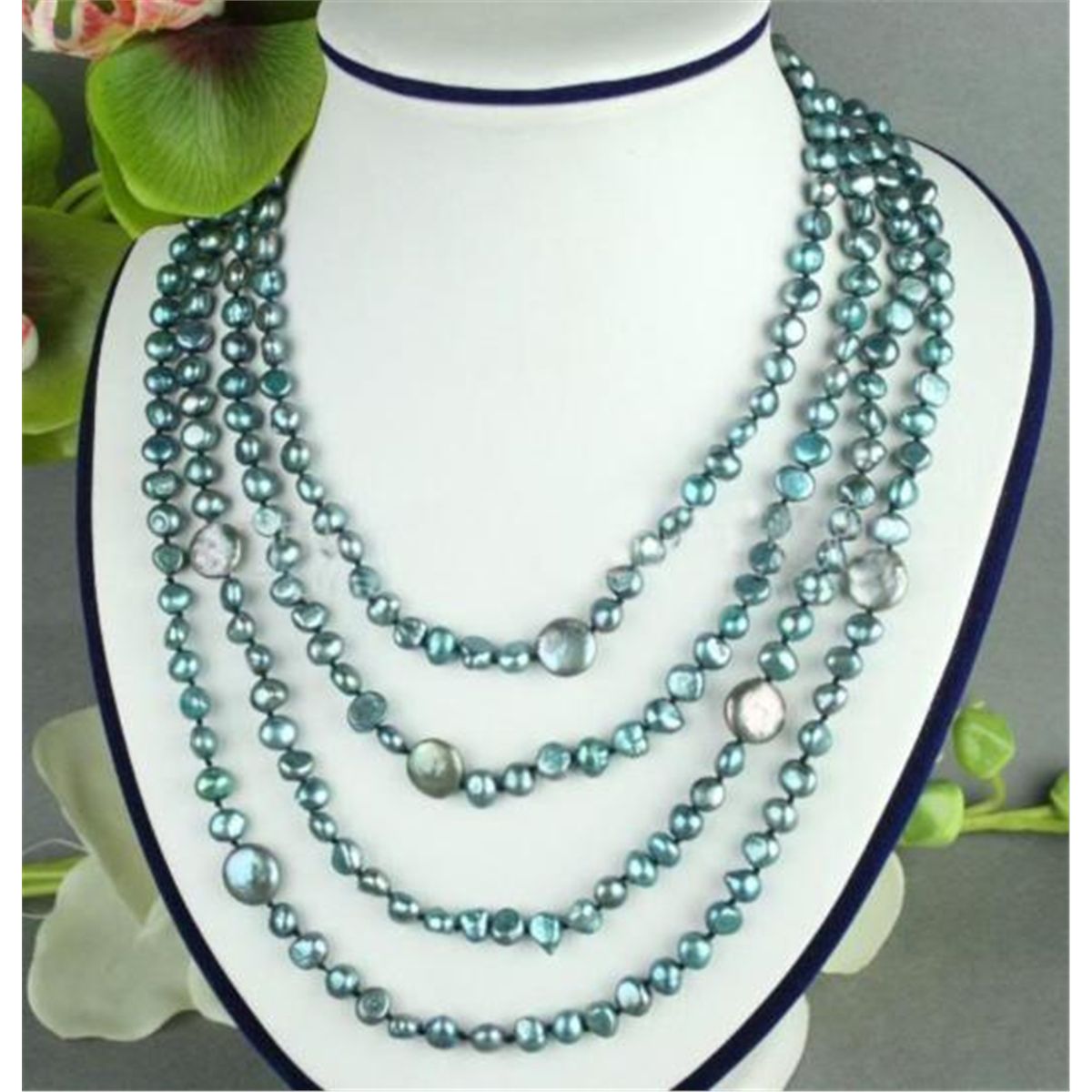 MWF1097 - GORGEOUS FOUR STRAND GRAY PEARL&COIN PEARL NECKLACE
