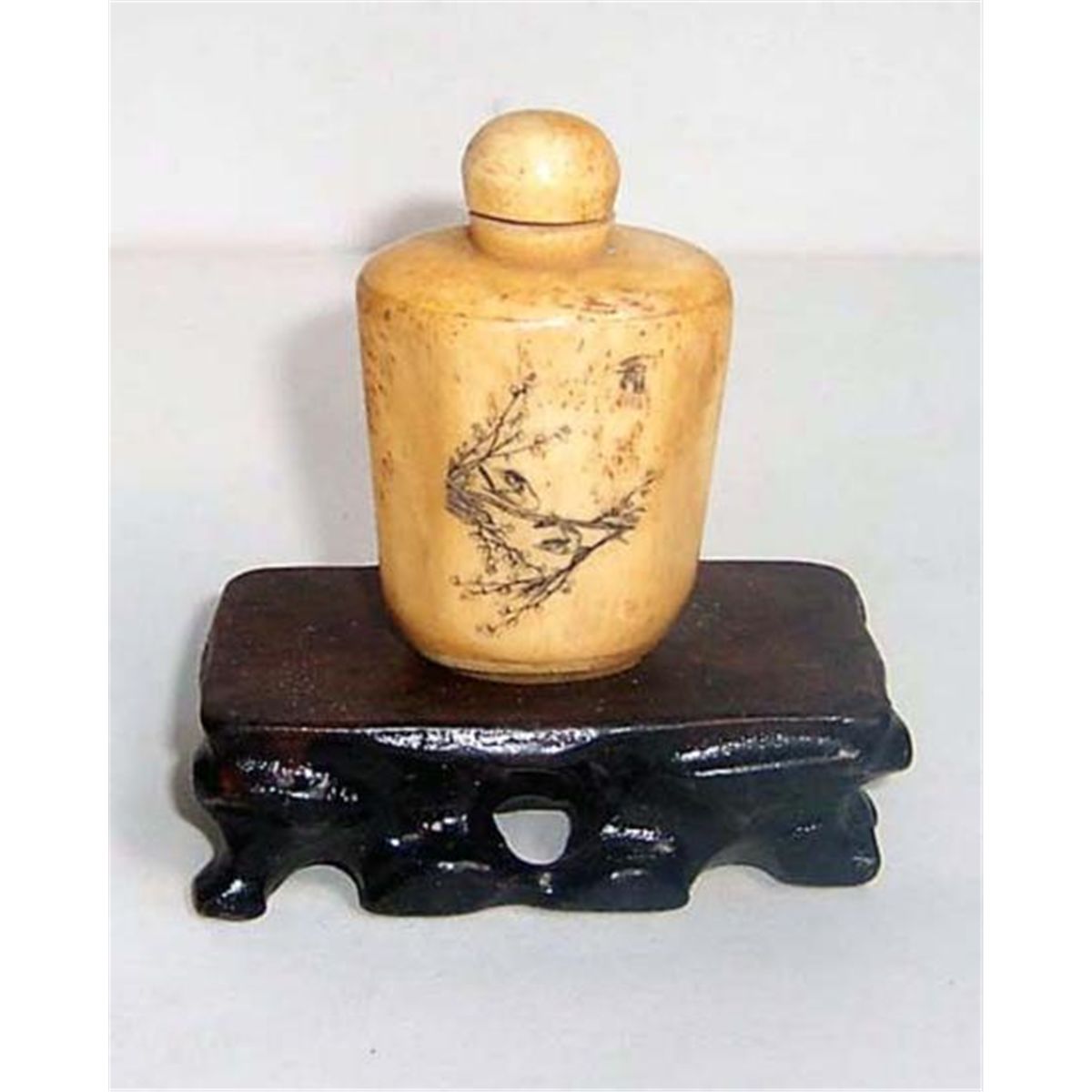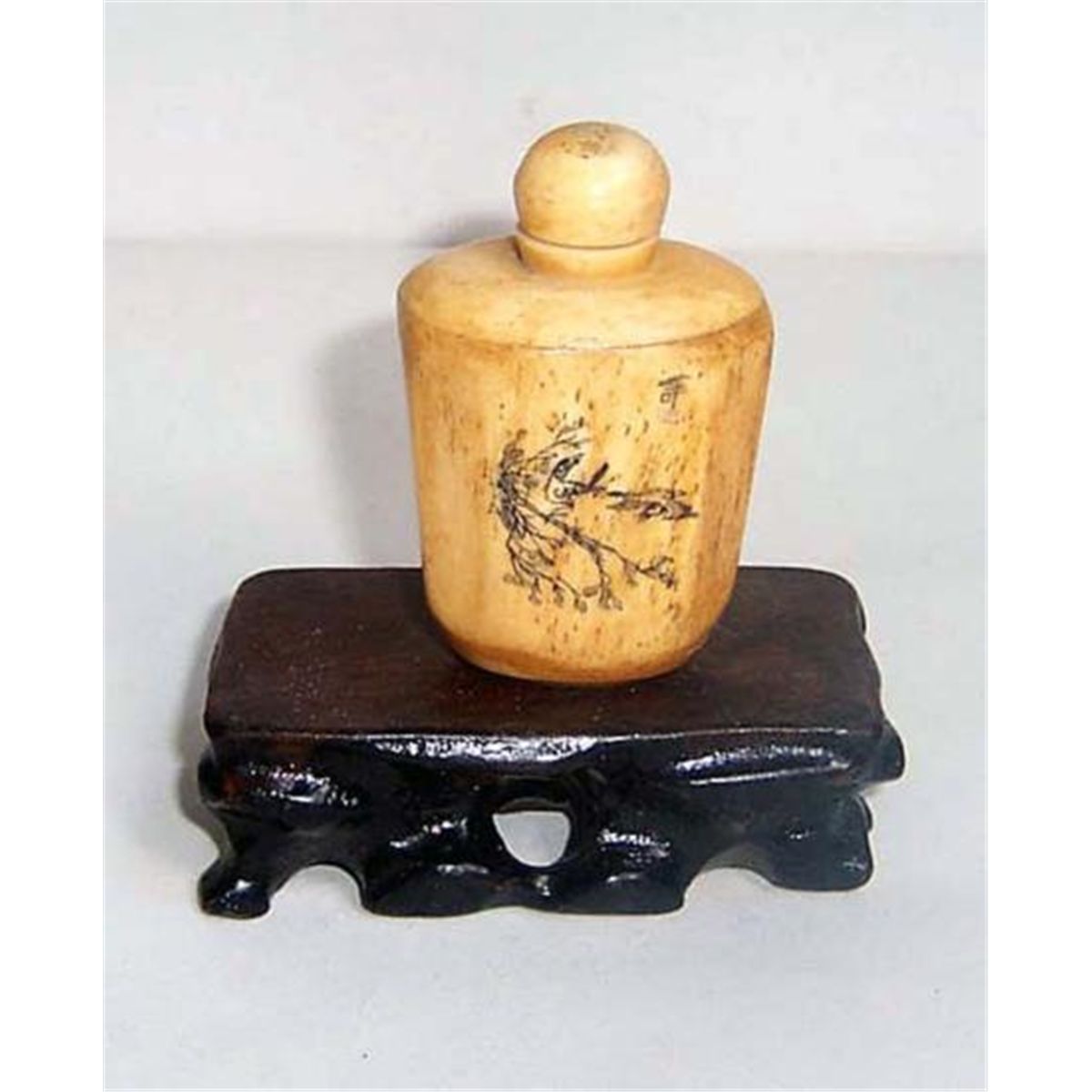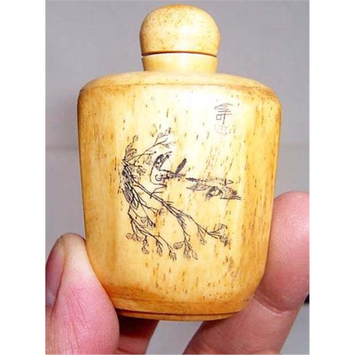 MWF1099 Chinese OxBone Snuff Bottle depicting a Bird