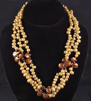 19in Three strand Champagne Fresh Water and Brown Coin Pearl Necklace