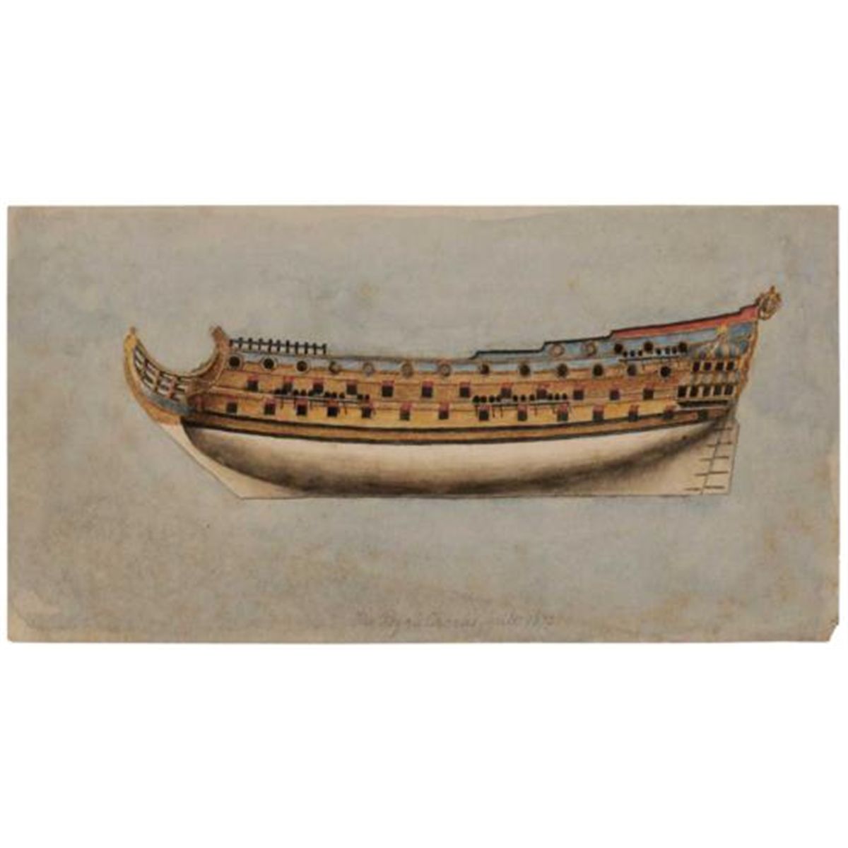 MWF1309B Watercolor on paper laid on card. - The Royal Charles, 5-1/4 x 9-7/8 in. unframed (British, 19th/20th century)