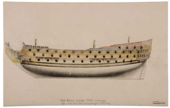 MWF1309C Watercolor on paper laid on card. The Royal James, , 7-1/4 x 11-3/8 in. signed lower right ~H. Fletcher~ unframed (British, 19th/20th century)