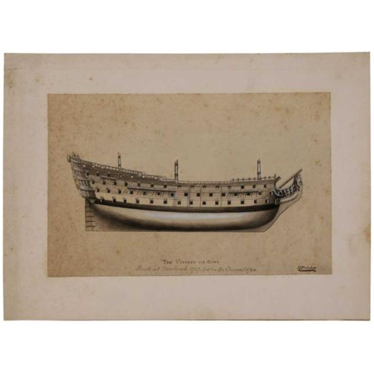 MWF1309E Watercolor on paper laid on card. The Victory 110 Guns~, 7-7/8 x 12-1/4 in. signed lower right ~H. Fletcher~ unframed (British, 19th/20th century)
