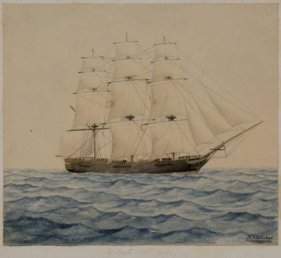 MWF1310C Watercolor on paper laid on card Merchant Vessel, unframed, signed lower right H. Fletcher (British, 19th/20th century)