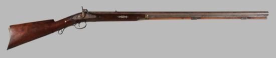 MWF1316 Brass-Mounted Percussion Rifle American, 19th century, 36 in. barrel, about .50 cal., walnut half stock, lockplate marked ~Spie~s~, illegible barrel hallmark