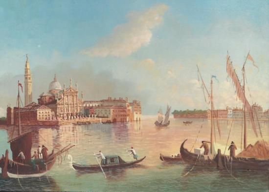 MWF1383E 5x7 Oil on Board Depiciting Venice, Gondola Scene