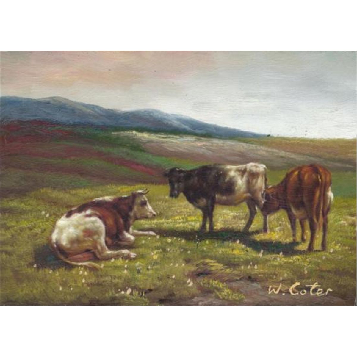 MWF1383S 5x7 Oil on Board Depiciting Cow & Pasture Scene, Signed W. Coter