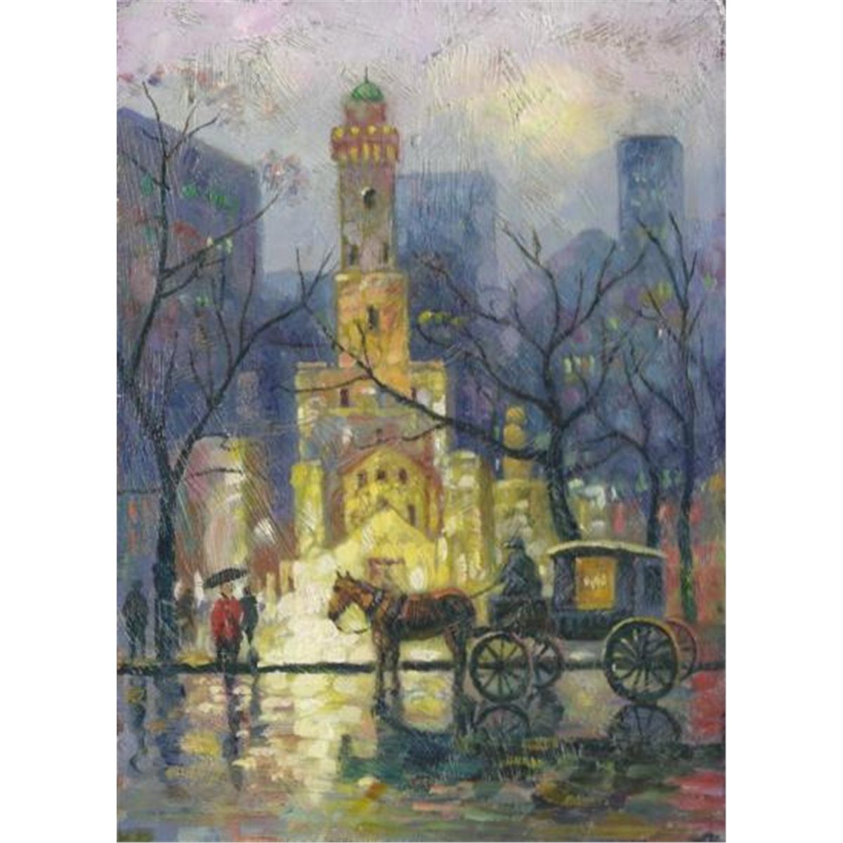 MWF1383U 5x7 Oil on Board Depiciting Evening Street Scape Scene