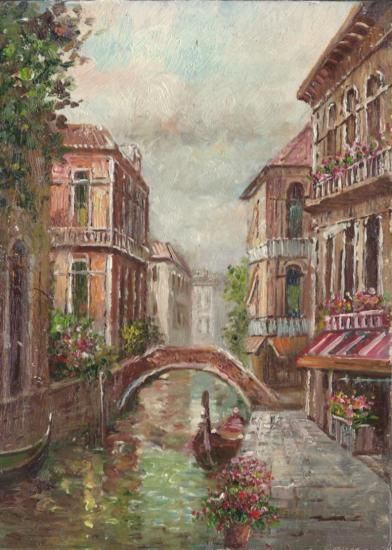 MWF1383W 5x7 Oil on Board Depiciting Venice, Gondola Scene